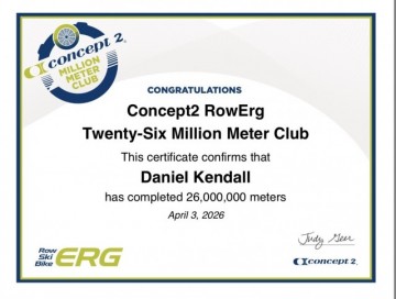 | 04/17/26 | 10:00.1 | 2,000 | 2:30.0 | RowErg |